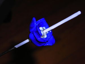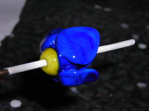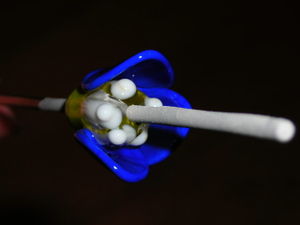 Wie ihr es schon gemacht habt setzen wir einen Riesenblob auf. Jetzt müßt ihr allerdings daran denken, daß er in der gepreßten Länge nachher, das Innere der Blüte überragen soll. Also hier gilt, lieber ein bissele mehr.