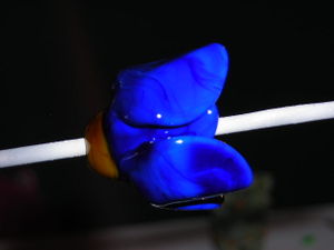 - Glas: eine Glasstange mit der Blütenfarbe eurer Wahl, Grün, Klarglas, ein Reststück für die Staubblätter