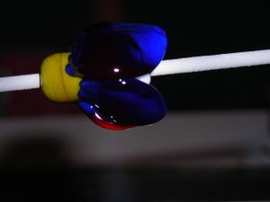 Der Sitz der grünen Blätter ist zwischen den Blauen der letzten Reihe.